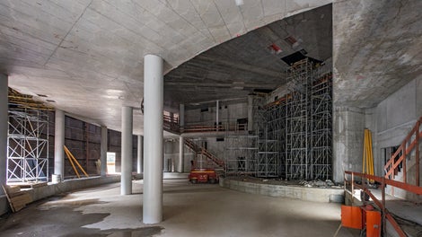 Zwischen Sanierungsbaustelle und Rohbau im Inneren des Stahlgerüsts blieb nur 1,50 m Platz.