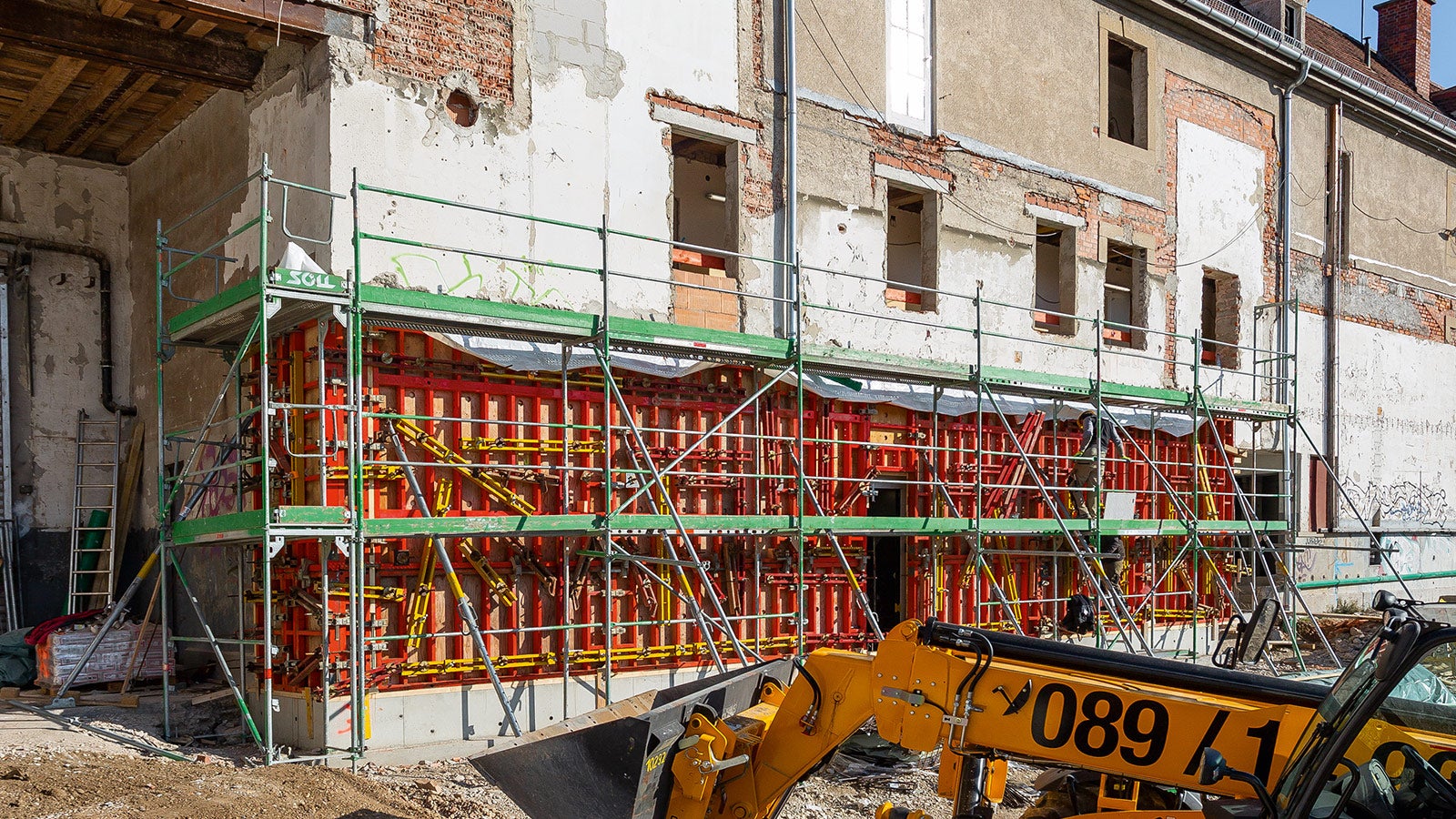 Bei den Sanierungsarbeiten am Bestandsgebäude des ehemaligen Münchner Viehhofs fand die DUO Verbundschalung überall dort Verwendung, wo eine Kranunterstützung nicht oder nur eingeschränkt zur Verfügung stand.